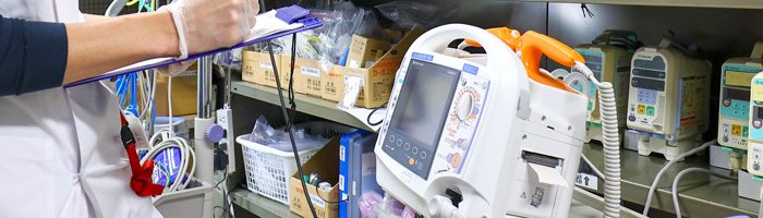 医療施設の様々な分野で使用される医療機器の安全使用と機器の性能が維持できるように保守・点検を行います。また医療機器の一括管理し効率的で適切な運用ができるように管理しています。また、医療機器を安全に使用してもらうように定期的に研修会の開催を行っています。